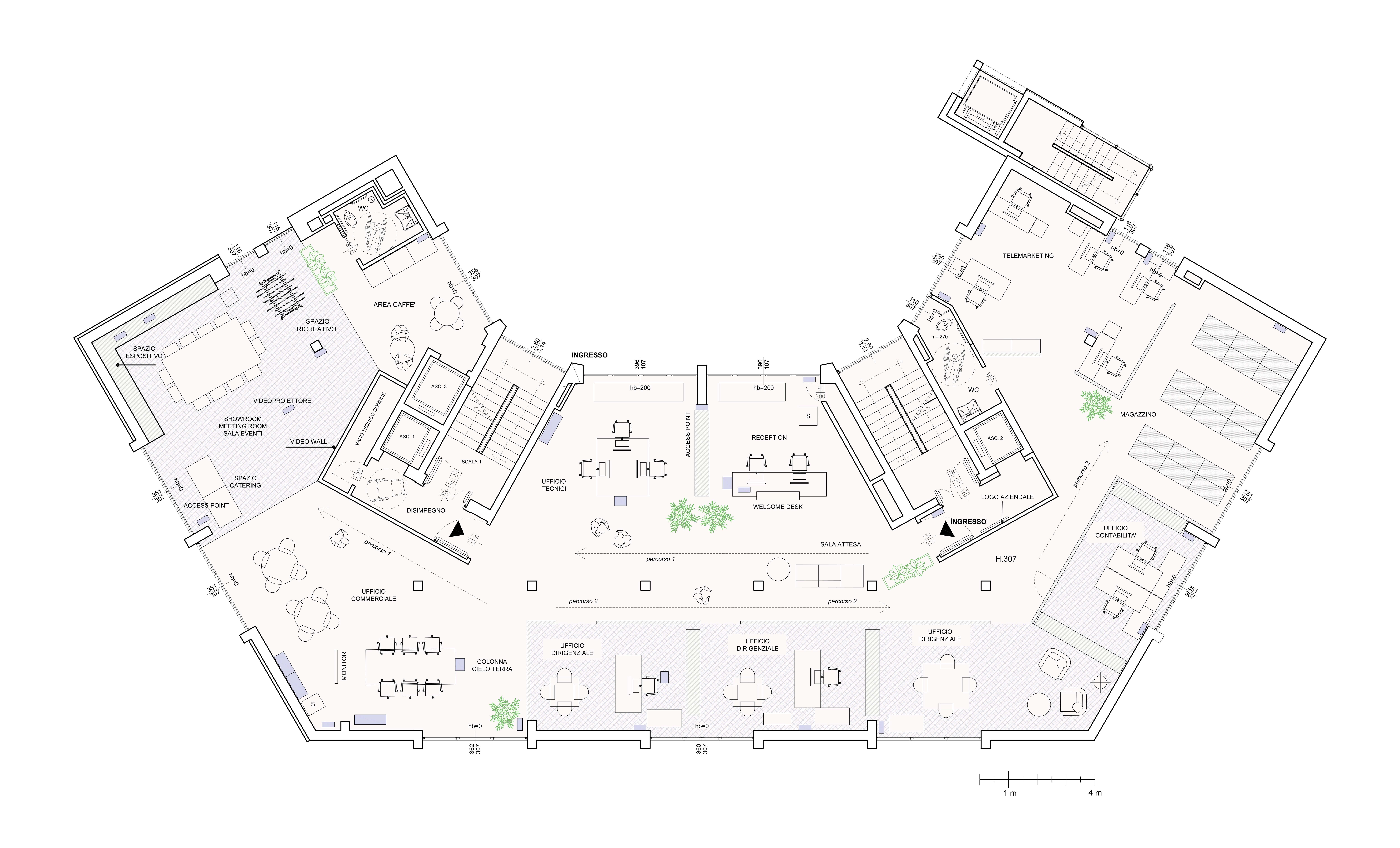 Il nuovo layout distribuisce gli uffici favorendo relazioni, collaborazione e l’interazione tra persone e tecnologia.