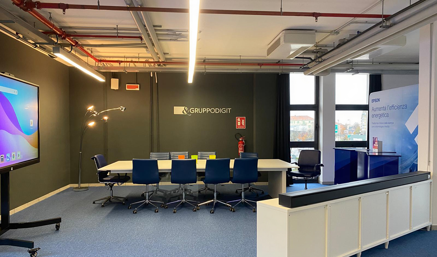 UN OPEN SPACE DI 500 METRI QUADRI ACCOGLIE LA NUOVA SEDE DI GRUPPODIGIT, AZIENDA LEADER IN SOLUZIONI IT. IL PROGETTO ARCHITETTONICO E IL DESIGN TRADUCONO I VALORI AZIENDALI IN UNO SPAZIO DI LAVORO CONTEMPORANEO, DINAMICO E IMMERSIVO.