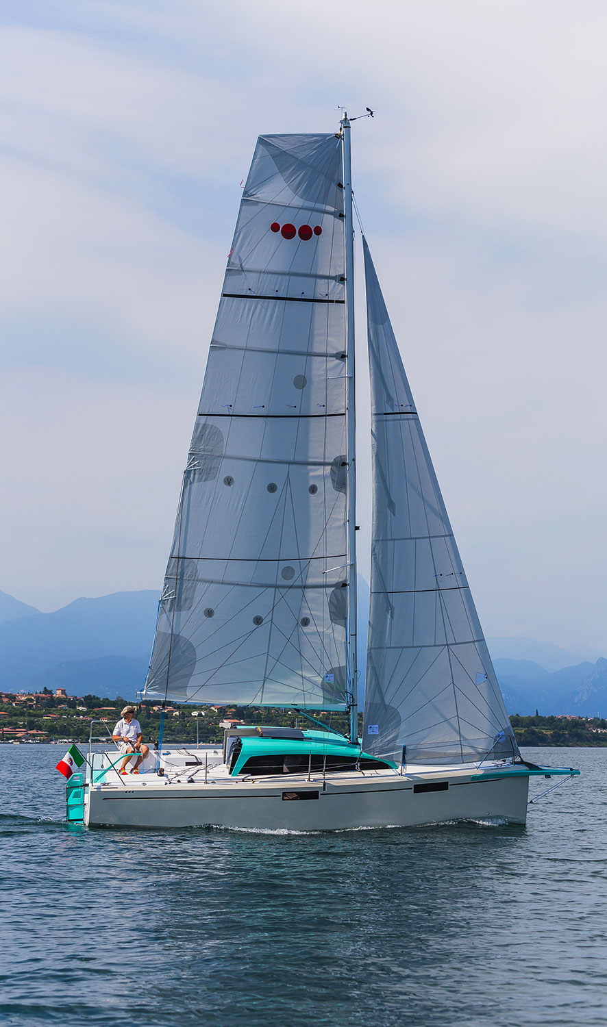 DEDICATO ALLA CROCIERA VELOCE, QUESTO PICCOLO YACHT HA PRESTAZIONI VELICHE ENTUSIASMANTI ANCHE CON POCO VENTO. LA LARGHEZZA MASSIMA DI SOLI 2,54 METRI E IL PESO CONTENUTO NE FANNO UN NATANTE CARRELLABILE.