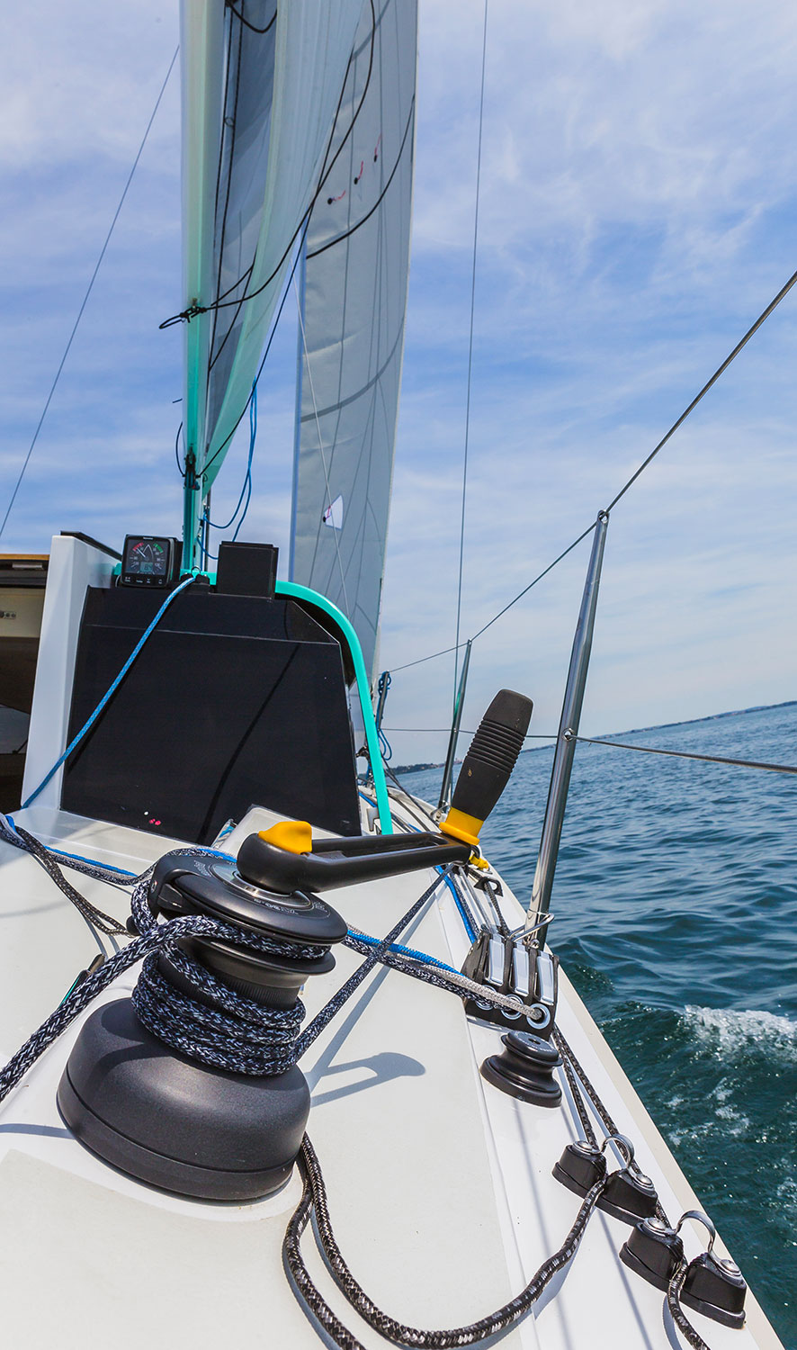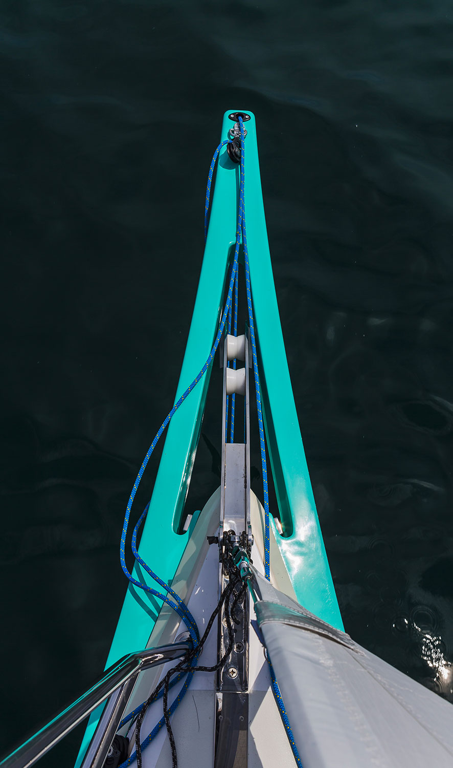 Il grande piano velico sfrutta una grande randa square top ampiamente terzarolabile, un fiocco al 105 per cento rollabile e una trinchetta amovibile per tempi duri.