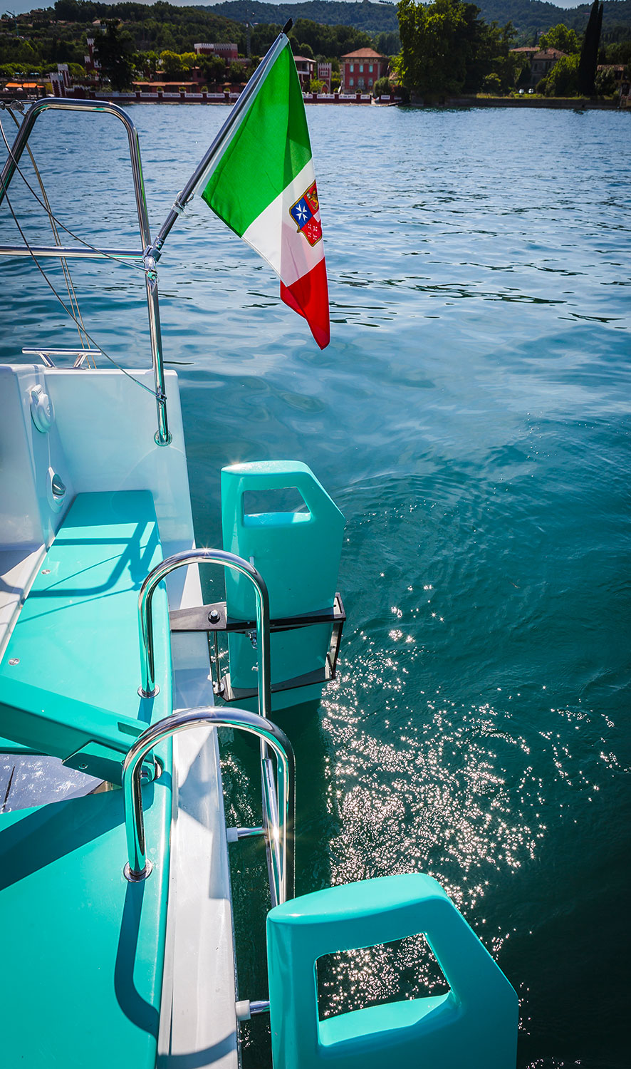 OGNI PARTICOLARE È STUDIATO NEL DETTAGLIO NEL RISPETTO DELLA FUNZIONE E QUINDI DELLA FORMA, DAL MUSONE DELL’ANCORA AI RINVII SUI WINCH FINO ALLA SCALETTA IN ACCIAIO AMOVIBILE E RIPIEGABILE.